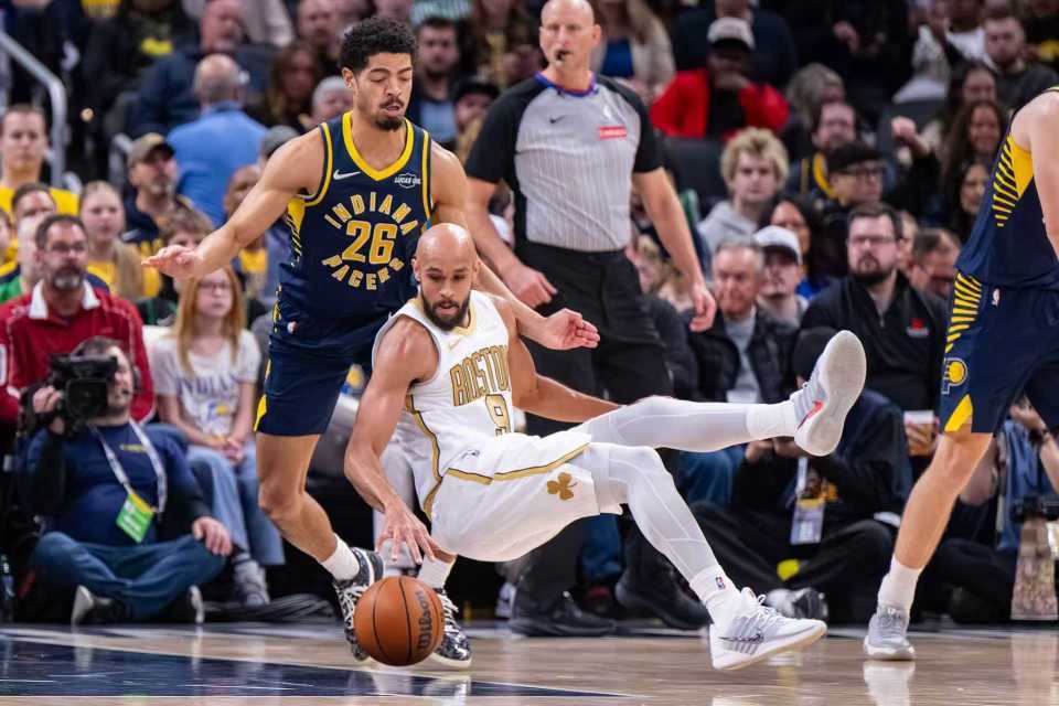 凯尔特人上一场主场95-100惜败马刺,步行者过去两场连赢黄蜂与热火收获2连胜,本赛季前两次交锋凯尔特人均战胜步行者。本场凯尔特人缺少布朗、塔图姆与米诺特,步行者缺少托平、哈利伯顿、马瑟林。首节双方进攻效率均不高,且两队在外线的三分准星均不佳,首节凯尔特人19中9,其中三分7中2,步行者20中8,其中三分6中1,双方均没有球员得分上双,首节结束凯尔特人24-19领先步行者。