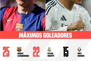 体育资讯4月1日讯 西甲官方预热了本赛季最佳射手的争夺,并公布了目前射手榜排在前六位的球员。