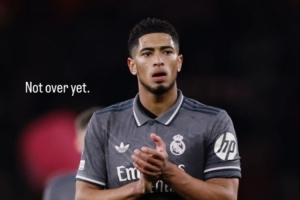 赛后,皇马中场贝林厄姆在社交媒体晒图鼓励球队。他上传了自己在比赛中的照片,并配文写道:“还没有结束”。